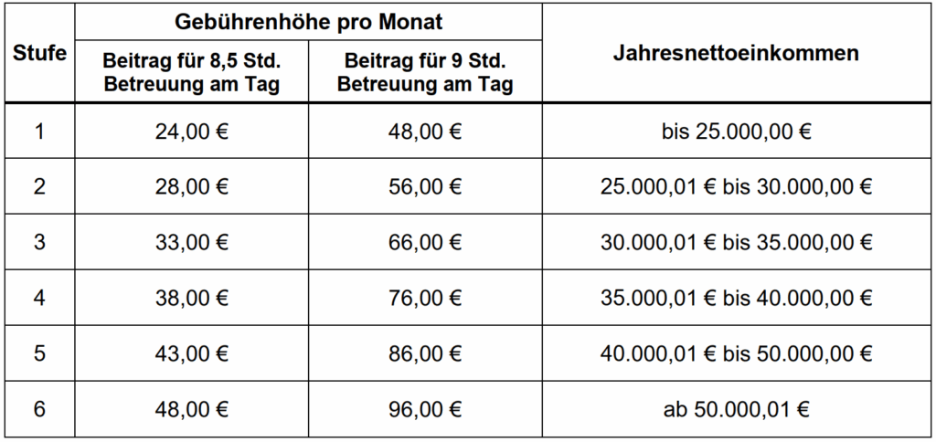 Es ergibt sich folgende Gebührenstaffelung ab dem 01.08.2025